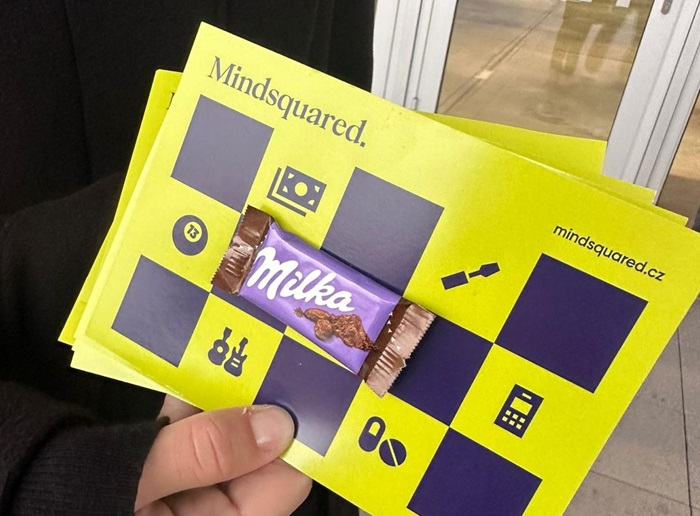 Mediální agentura Mindsquared využila čtvrteční oborovou konferenci Forum Media, aby oslovila potenciální klienty. Na účastníky konference cílila promo akcí před vstupem na konferenci, kde rozdávala příchozím čokoládu Milka se vzkazem „rozbalte to s námi".