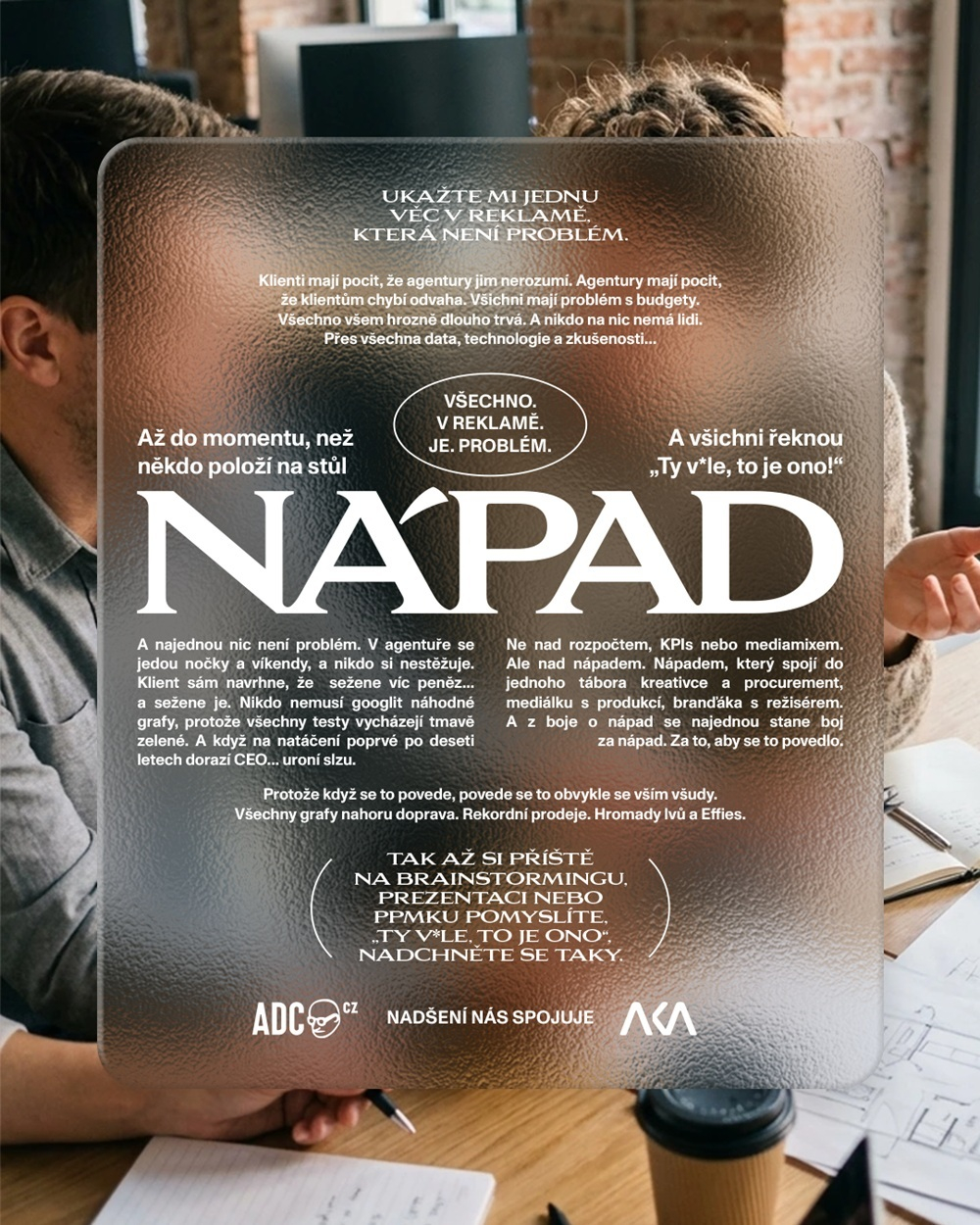 Projekt reaguje na rostoucí tlak na výkon, rychlost a efektivitu v reklamním průmyslu. Podle iniciátorů iniciativy se v tomto prostředí často upozadňuje samotná fáze kreativního přemýšlení, přestože právě kvalitní nápad je klíčovým prvkem úspěšné komunikace. AKA a ADC chtějí prostřednictvím společné platformy připomenout roli kreativity jako spojnice mezi strategií a výsledky kampaní.