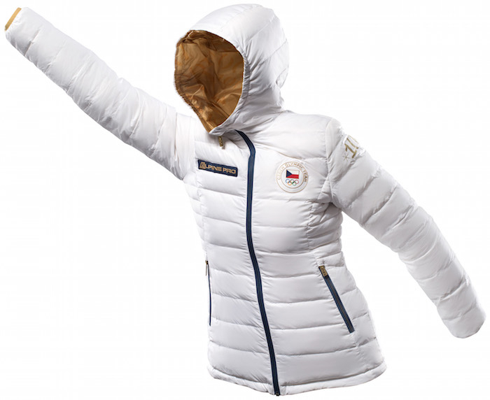 Dalším prvkem je batoh s voděodolnou pláštěnkou, vyvedenou v designu české národní vlajky, nebo oboustranná péřová bunda se zlatou podšívkou. „Inspirovali jsme se počinem týmu Evy Samkové po jejím vítězství na hrách v Soči, kde si všichni otočili bundu naruby a nechali vyniknout zlatou podšívku. Nyní je bunda z obou stran plně funkční. Sportovci si tak mohou vybrat, jaký barevný motiv budou nosit,“ doplnil Hrbek.
