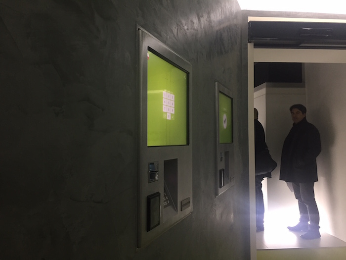 Vstupní skla prodejny jsou ze speciálního tvrzeného materiálu odolného běžným nárazům, podlaha je pokryta kaučukem. Ve vstupní místnosti je možné si zboží objednat, zaplatit online či kartou a následně se otevřou prosklené dveře do další místnosti, kde zákazníka ke zboží dovedou návodné světelné LED diody na podlaze. Rozsvítí se tak sloupec se schránkou i box samotný, kde čeká připravená objednávka.