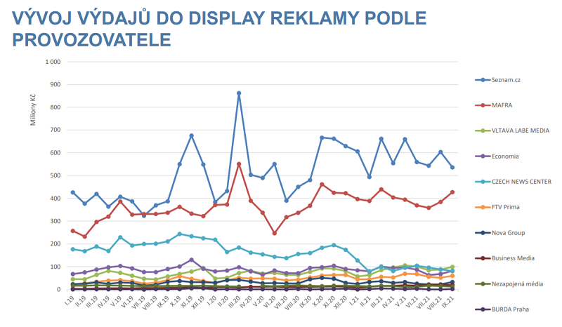 Nejsilnějšími provozovateli z pohledu příjmů z internetové display reklamy jsou nadále Seznam.cz, Mafra a Czech News Center.