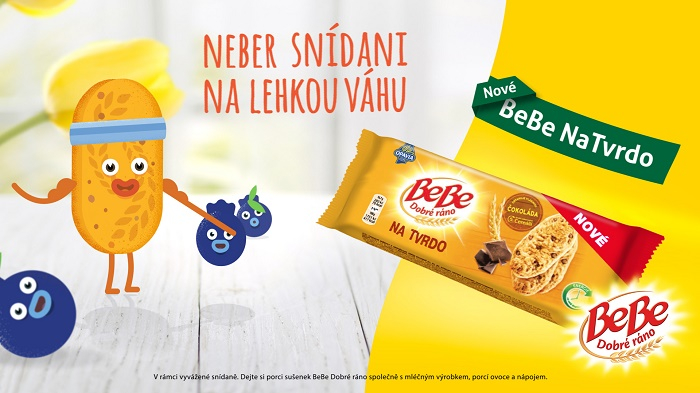 Aktuální animovanou kampaní podporujeme naší novou řadu Na tvrdo, v níž sušenka BeBe vystupuje jako trenér, který vás dostane do formy, a s ní cvičí různorodé ovoce jako kiwi, broskev nebo borůvky. Opět se tak snažíme komunikovat vyváženou snídani, a zároveň zasáhnout mladší cílovou skupinu ve věku 15 až 35 let, která má nejvyšší kontribuci ke značce. Značka BeBe Dobré ráno má hodně produktových řad, a proto musíme být hodně aktivní. Navíc se v našem segmentu potýkáme s mnoha konkurenty, a protože jsme lídrem, chceme být neustále inovativní.