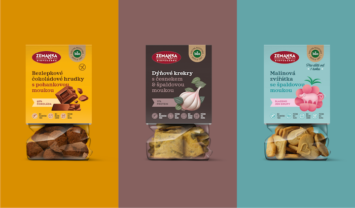 Nové obaly kombinují pestrou škálu barev s hravými motivy. „Našim cílem pro letošní rok je začít oslovovat širší veřejnost. Naše nejvěrnější zákazníky tvoří příznivci bio potravin, rodiče malých dětí nebo lidé s potravinovými alergiemi. Věřím ale, že v Česku žije mnohem více lidí, kteří si začali více uvědomovat, co si dávají na talíře a chtějí si kupovat kvalitní potraviny, které skvěle chutnají,” uvádí změnu vizuální identity majitel Biopekárny Zemanka Jan Zeman.