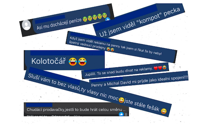 „U Penny většina lidí na sociálních sítích vyjadřovala negativní postoj k osobě Michala Davida. Vadilo jim zejména spojení jeho osoby s neslavnými dotacemi či světskou minulostí. Někteří uživatelé by zároveň uvítali, kdyby finance místo na reklamu šly na platy zaměstnanců. Jiní zase považovali spotza ne zcela povedený, nebo ho nařkli z trapnosti, bez dalších hlubších myšlenek,“ říká Renáta Milecová, Social Media Listening Executive Adbros.
