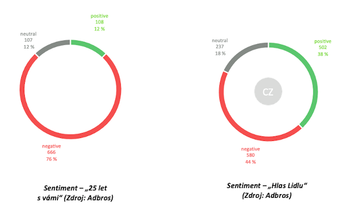 Ze zjištění social media listeningu provedeného společností Adbros je zřejmé, že tentokrát Lidl vyhrál – jeho reklama u uživatelů sociálních sítí nejen vyvolala větší zájem, tedy měla vyšší počet zmínek ve sledovaném období, ale lidem se i více líbila, což ukazují komentáře i jejich sentiment.