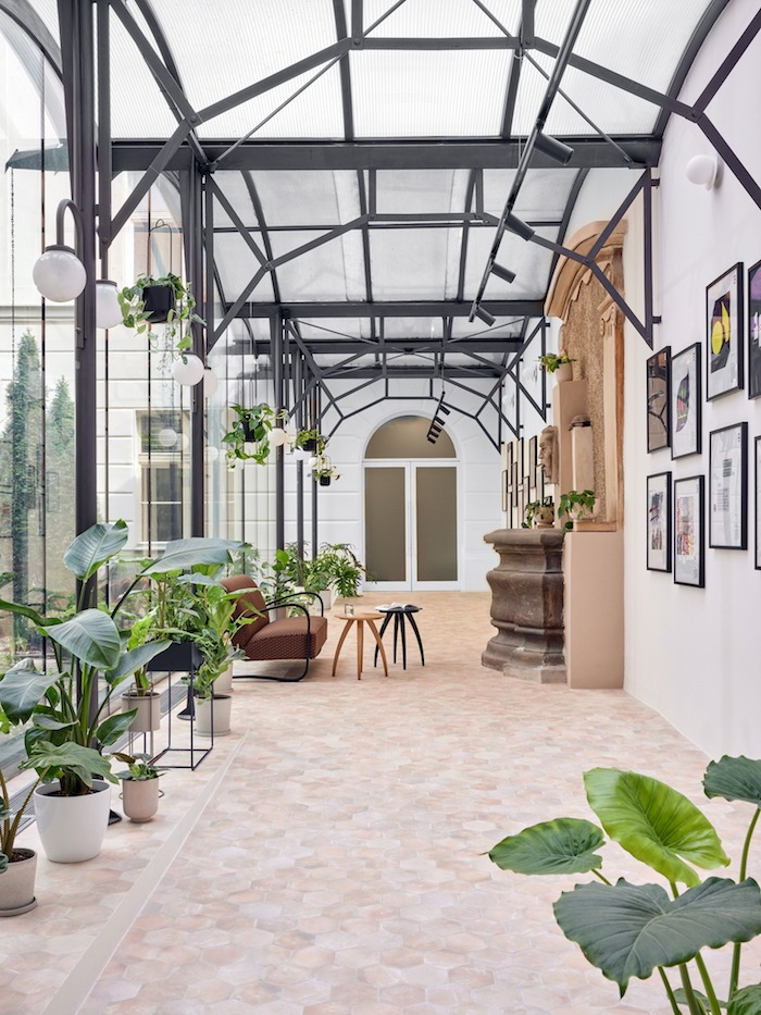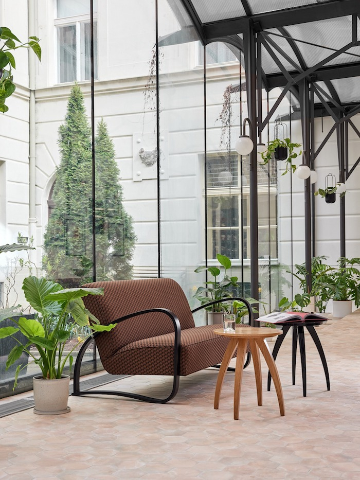 Na přední místnost prodejny s renesanční valenou klenbou navazuje zčásti prosklená spojovací chodba, která se proměnila v galerii. Jejím ústředním bodem je nábytek Modernista, konkrétně pohovka, která je adaptací křesla s područkami z ohýbaného dřeva z dílny Jindřicha Halabaly, a sada konferenčních stolků pavouček z masivního dubového dřeva. „Budeme rádi, když tento unikátní prostor znovu oživí svou přítomností lidé zajímající se o češství tak, jak tomu bylo na tomto místě před více než 200 lety,“ vysvětlují Neubergerovi svůj záměr se založením galerie.