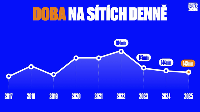 Z pohledu generací tráví na sítích nejvíce času Generace Z — v průměru 220 minut denně (3:40 hod). Nově výzkum zkoumal Generaci Alfa (narození 2010 a dále), kde vládne YouTube, Instagram a TikTok. „Generace Alfa je pro nás zatím trochu tajemství. Nicméně už teď můžeme říct, že proti GenZ tráví na sítích méně času," dodává Březinová.