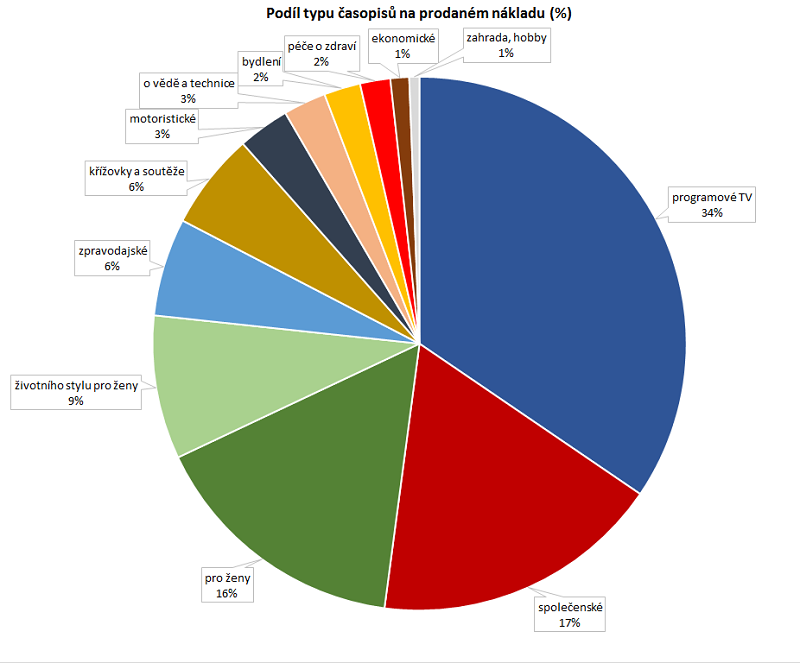 Programové televizní časopisy, časopisy pro ženy a společenské časopisy mají nejvyšší podíly na celkovém prodaném nákladu časopisů. Ukazují to data Kanceláře ověřování nákladů tisku ABC ČR za první pololetí roku 2021. Podíl je spočítán na základě souhrnného průměrného prodaného nákladu všech časopisů v jednotlivých kategoriích za období prvního letošního pololetí.