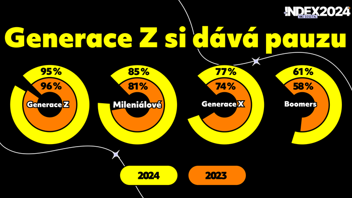 Oproti loňskému roku se mírně zkrátila doba, kterou na sociálních sítích trávíme. Zatímco v roce 2023 to bylo v průměru 147 minut denně, letos se čeští uživatelé věnovali sítím průměrně 144 minut za den. Nejvyšší průměrný čas uváděli respondenti z generace Z (27 let a mladší), a to 210 minut denně.