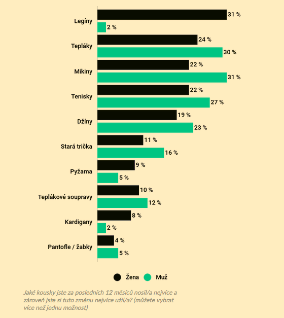 Až 68 % Čechů změnilo v pandemii styl oblékání. Prim hrály legíny,