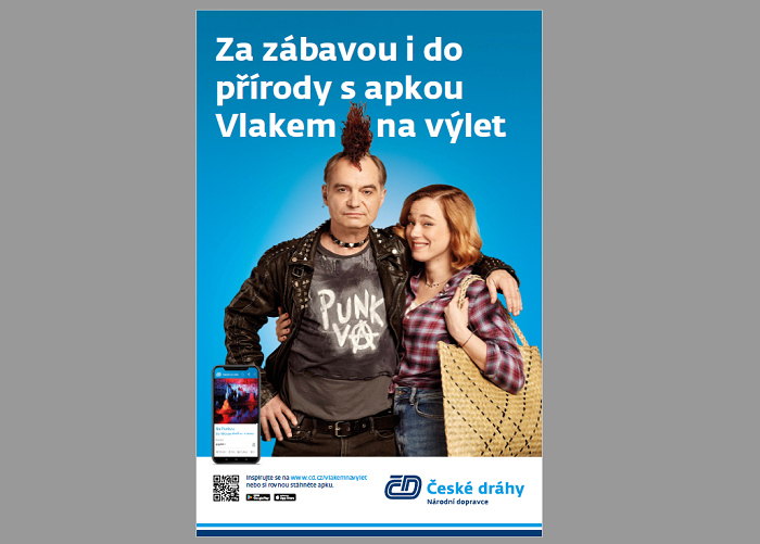 Nová kampaň Českých drah se po koronavirové přestávce zaměřuje na podporu aplikace Vlakem na výlet. Ivan Trojan v ní tentokrát vystupuje ne jako úspěšný byznysmen, ale jako pankáč. V kampani si zaměňuje výlet do podzemí s undergroundovým koncertem. Ve spotu dále hrají Kristýna Boková v roli matky a Veronika Marková v roli dcery.