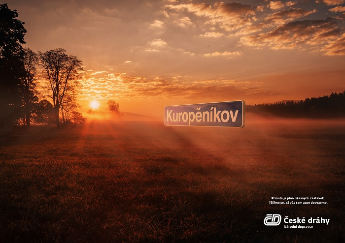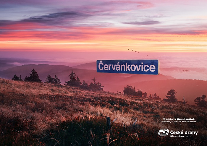 České dráhy svou první letošní kampaní chtějí vítat cestující po dlouhé zimě a vybízejí je k výletům do přírody. Kampaň vytvořená agenturou Havas se objevuje v outdooru, tisku, rádiu a na sociálních sítích. Pracuje s motivy poetických zastávek v přírodě. Inspirací pro cestující je tak série vizuálů s nádražními cedulemi zastávek, které svými vymyšlenými názvy naznačují, jaký zážitek je čeká – Červánkovice, Měkkomechovice, Kuropěníkov nebo třeba Velký Borůvkov. Kampaň poběží do konce května.