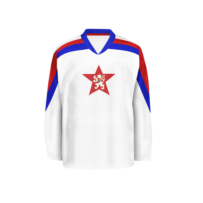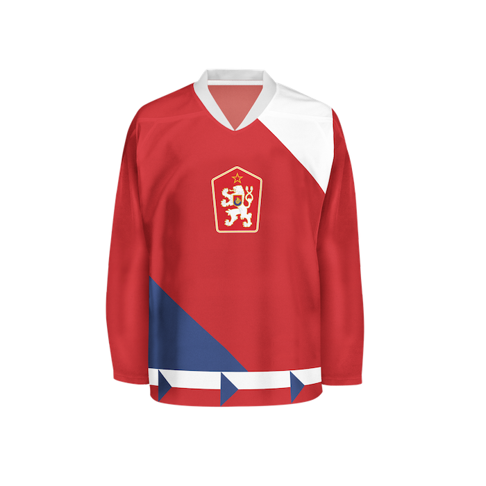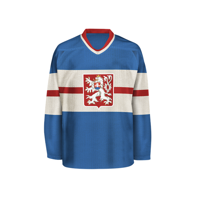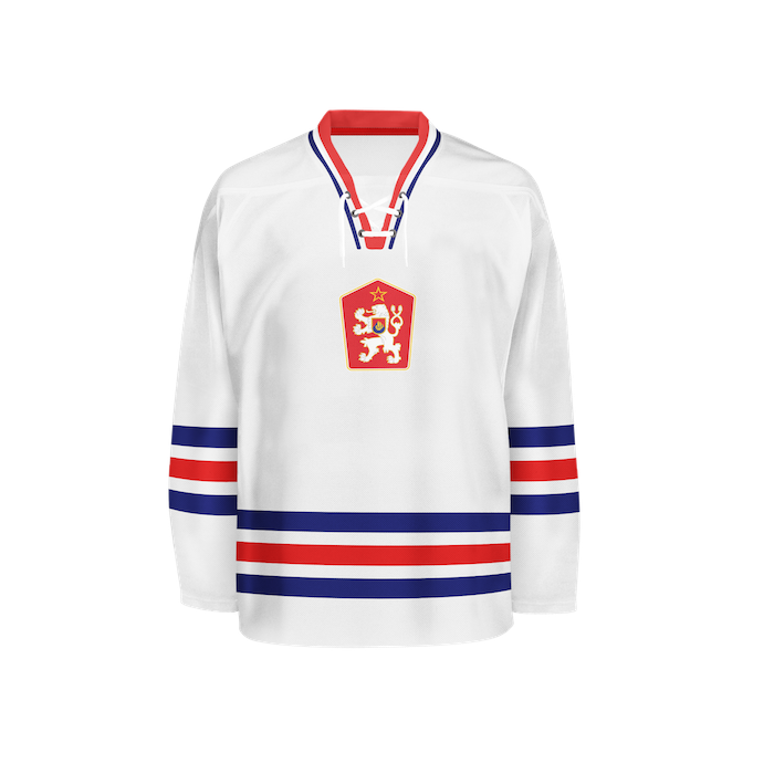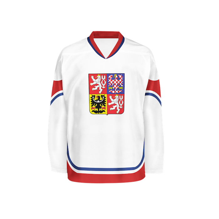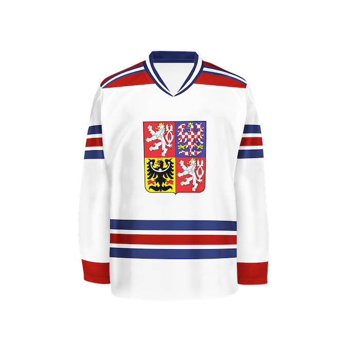 V minulosti se na národních dresech objevovala státní vlajka, název státu (ČSR, ČSSR, ČSFR) anebo lev. Velký státní znak je ústředním motivem národního dresu posledních 25 let.
