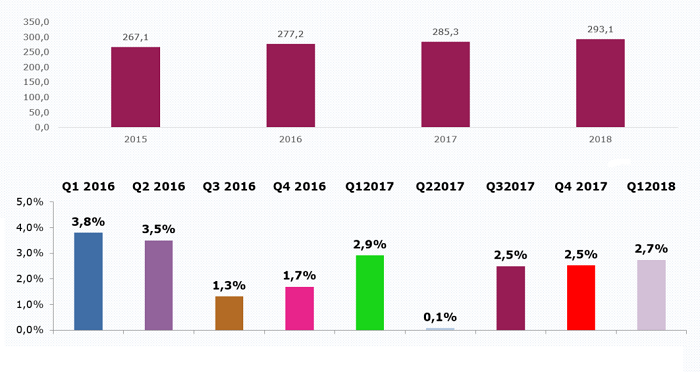 V prvním letošním čtvrtletí představovaly čisté investice do reklamy v českých rádiích objem 293,1 mil. Kč. To je nárůst o cca 8 mil. Kč ve srovnání s prvním čtvrtletím 2017. Trh rozhlasové reklamy rostl v prvním čtvrtletí meziročně o 2,7 %. Podle provozovatelů českých rádií se tím potvrzuje mírné tempo růstu z předchozího kvartálu.