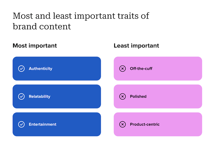 Značky by se měly v online prostředí orientovat, ale neznamená to, že by měly naskočit na každý trend a používat každý nový mem. To může být v oslovování uživatelů kontraproduktivní. Více než čtvrtina respondentů souhlasí s tím, že je to efektivní pouze tehdy, pokud trendy značky dokážou dotáhnout do jednoho nebo dvou dnů poté, co se tento trend objeví, Uživatelé tak spíše ocení ty značky, které jsou v komunikací své, autentické, originální a zapojují své publikum.