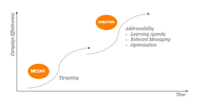 Adresnost dokáže zajistit větší míru doručení reklamního sdělení právě díky vyšší míře zaujetí, navíc vám umožní upravit sdělení na míru každému z vašich zákaznických segmentů. Zároveň poskytuje obrovský prostor pro výzkum na focus group v reálném čase. Testování různých claimů, produktů, ale i audia a následná optimalizace jsou klíčem ke kontinuálnímu růstu vybraných brandových nebo prodejních metrik. To běžné video, jehož míra dokoukání velmi rychle klesá, nabídnout nemůže.