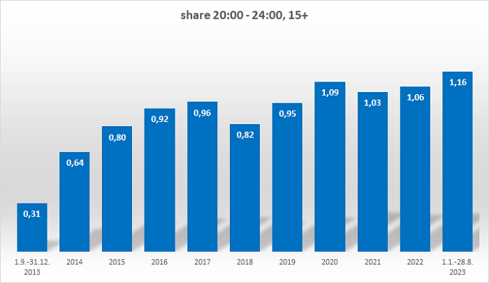 Podíl stanice ČT art na sledovanosti se v průběhu deseti let postupně zvyšoval. Nejvyšších hodnot dosahuje v letošním roce, kdy se ve svém vysílacím čase od 20:00 do 24:00 pohybuje na úrovni 1,16 % (15+, zdroj: ATO-Nielsen).