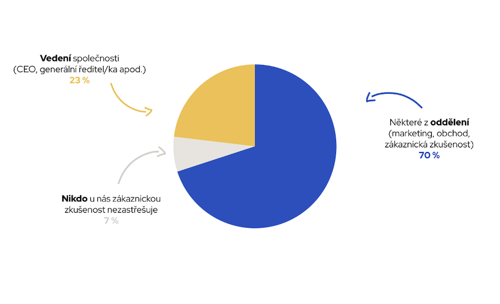 Mezi respondenty uvedla téměř čtvrtina, že CX má na starosti vedení. To může dávat smysl – vrcholový management by měl mít celkový přehled, co se ve firmě děje. Na druhou stranu zejména u větších firem CEO nebude řešit každodenní operativní záležitosti, ale bude mít na starosti spíše korporátní a byznysovou strategii spojenou s celkovým rozvojem firmy.