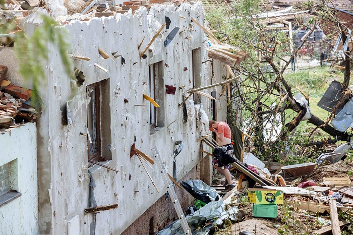 Petra Topiče (Mafra), který ukazuje následky ničivého tornáda na jižní