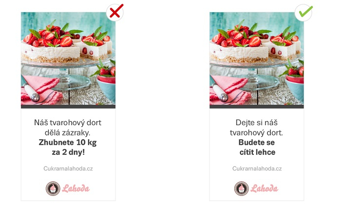 Pokud se na banneru například nachází zázračné tvrzení „Zhubnete 10 kg za 2 dny!”, ve Skliku neprojde. Je totiž nereálné, aby člověk po jakémkoliv jídle nebo i doplňku stravy zhubl 10 kg za 48 hodin.
