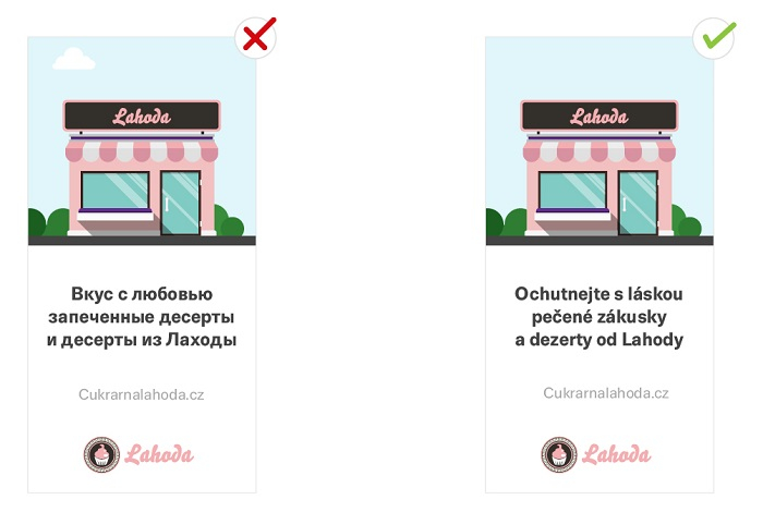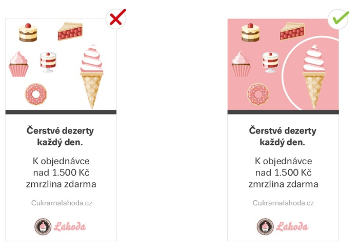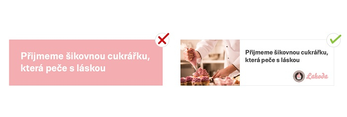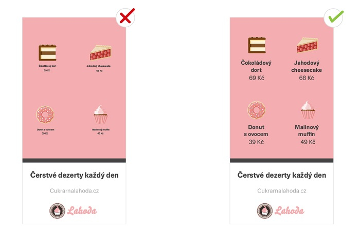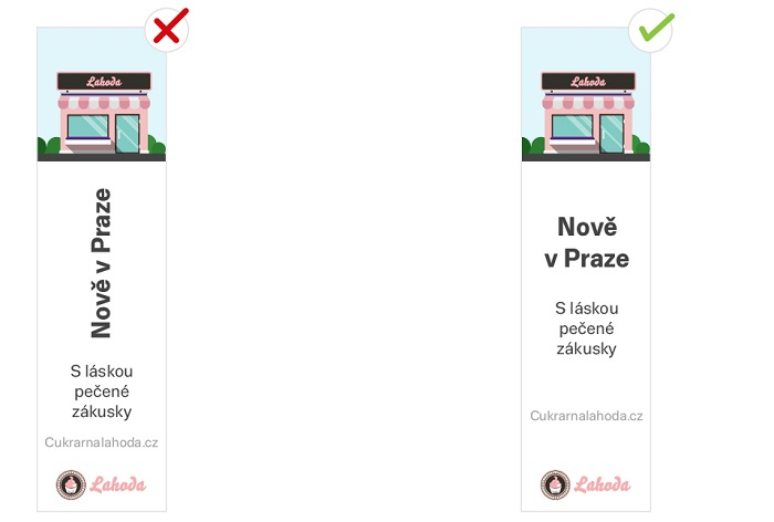Uživatelé nechtějí čtením reklamních sdělení trávit příliš času. Je potřeba je zaujmout hned. Když si zadavatelé nejsou jistí, jestli jde text přečíst, doporučujeme ho zvětšit.