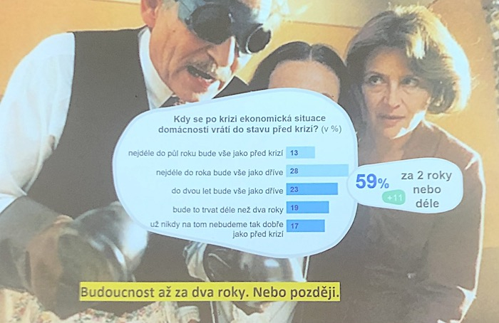 Z pohledu dat společnosti Simply5 bude v očích veřejnosti trvat návrat k normálu naopak déle – minimálně dva roky. Nejbližší budoucnost tak bude těžká, lidé se totiž obávají státního dluhu, vyšších daní i rostoucích nákladů na život. Až 60 % se domnívá, že bude muset šetřit. V očích 68 % již draho je a podle 89 % bude ještě dráž.