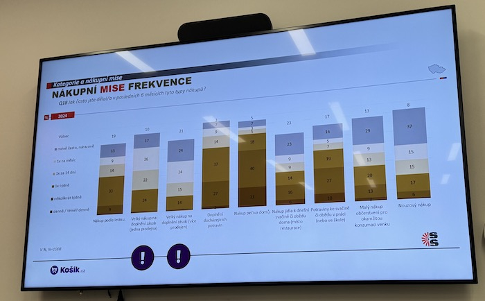 Podle dat zmíněné agentury realizuje velké nákupy u jednoho obchodníka asi 24 % Čechů jednou týdně, 22 % pak alespoň 2× do měsíce a 26 % lidí jednou za měsíc. Zbytek domácností dělá velký nákup nárazově anebo vůbec. Výrazně méně je pak lidí, kteří rozloží velký nákup mezi několik prodejen.