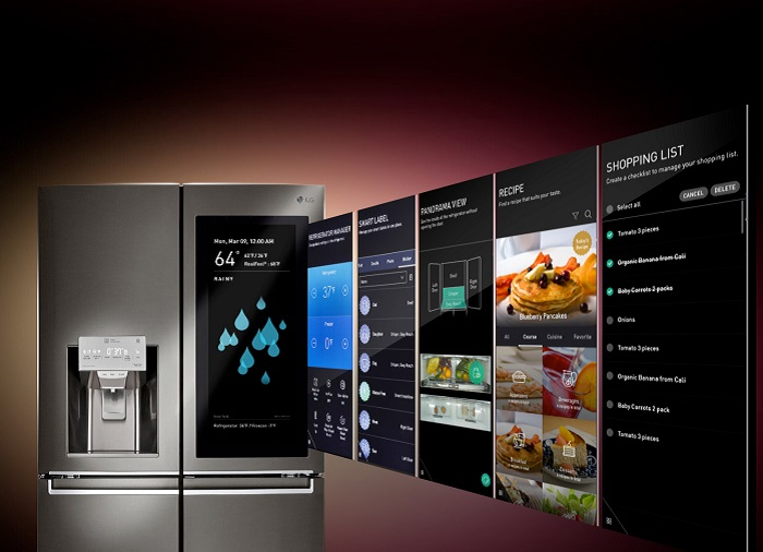 Domácnost budoucnosti má kuchyň s chytrou lednicí, například od již zmíněné značky LG, která loni dodala do všech svých spotřebičů wi-fi a letos umělou inteligenci ThinQ. Lednice InstaView ThinQ nejen dokáže udržet v chladu potraviny, ale na požádání ukáže předpověď počasí, nákupní seznam, zanechané vzkazy či co se nachází v lednici, aniž by bylo potřeba ji otevřít. Ve chvíli, kdy si majitel vybere jednu z ingrediencí, lednice je schopna nabídnout recept s dalšími dostupnými potravinami. Po výběru receptu dokáže rovnou předehřát i troubu.