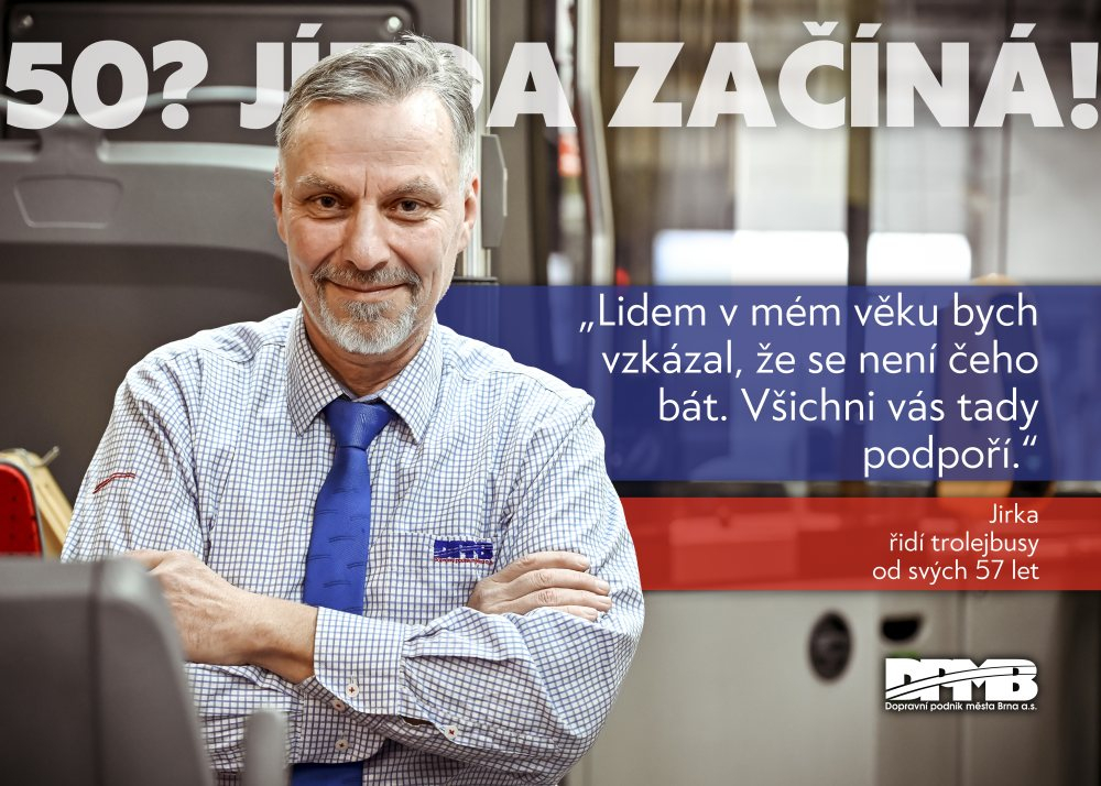 „V DPMB pracuje téměř 2500 zaměstnanců, z toho přibližně 1400 řidičů. Řidičů tramvají máme stabilně dostatek, ale dlouhodobě nám chybí zhruba 50 řidičů autobusů a trolejbusů. Právě proto se snažíme oslovovat různé skupiny lidí a ukázat, co můžeme nabídnout. Současná kampaň se zaměřuje na věkovou skupinu kolem padesáti let. Na trhu práce můžou mít problém s uplatněním, u nás ale nikoli. Dokonce bych řekl, že určitá životní zkušenost a zralost může být v řidičské profesi výhodou,“ uvádí Miloš Havránek, generální ředitel Dopravního podniku města Brna.