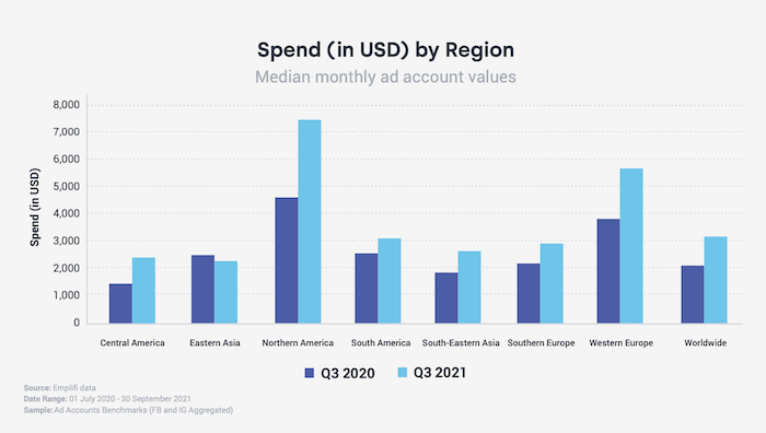 Podle zprávy vzrostly meziročně celosvětové výdaje za reklamu na sociálních sítích o 43 %. Nejvyšší meziroční nárůst byl zaznamenán ve Střední Americe (+78,8%) a v Severní Americe (+59,5%).