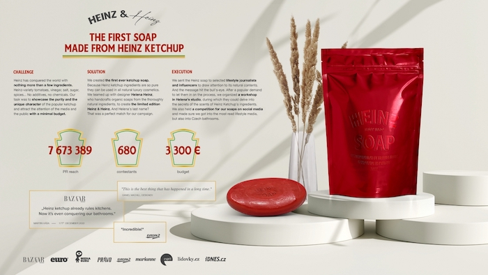 Po jedné nominaci mají agentury Havas Prague, jež se do finále dostala v kategorii Print & Publishing s kampaní Horizonty pro České dráhy, a Leo Burnett se svým kečupovým mýdlem Heinz, jenž zaujal porotu v kategorii Product Design.
