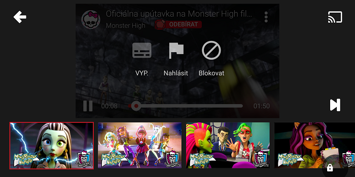 Aplikace vedle nabídky video obsahu umožňuje rodičům kontrolovat, která