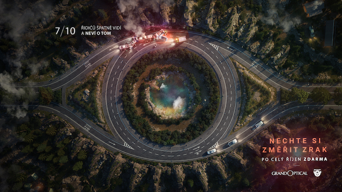 „Kreativa kampaně je postavená na jednoduché a silné vizuální metafoře silnice ve tvaru lidského oka. Srážka sedmi z deseti řidičů na vizuálu navíc symbolizuje zmiňovanou statistiku a upozorňuje na potenciální tragické následky zanedbávání péče o zrak pro všechny účastníky silničního provozu. Vizuál i spot jsou vytvořeny kompletně ve 3D,“ dodává Amila Hrustić, kreativní ředitelka agentury DDB Prague, jež je pod kampaní podepsána. Produkci kampaně zajistila společnost Fame Factory.