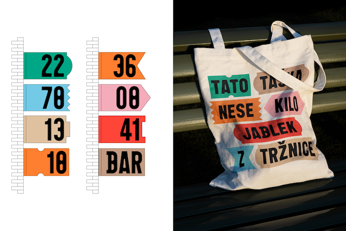 Při výběru písma byl pro autory důležitý odkaz k minulosti, ale také přesah do současného světa. „Ve vizuálním stylu se snažíme uchopit, co pro člověka může představovat tržnice i v dnešní době, ideálně prostor, který není určen jen k nákupu, hromadění a spěchu, ale slouží především jako místo plné zážitků,“ doplňují.