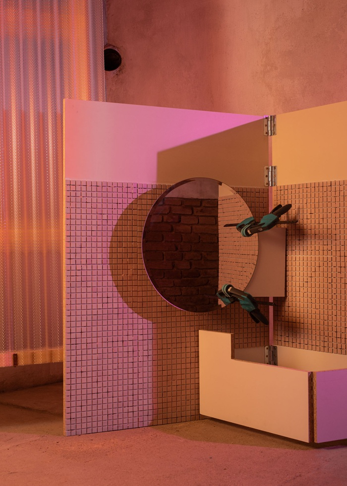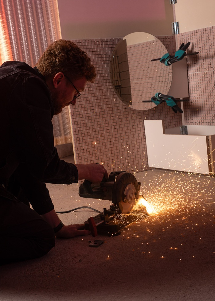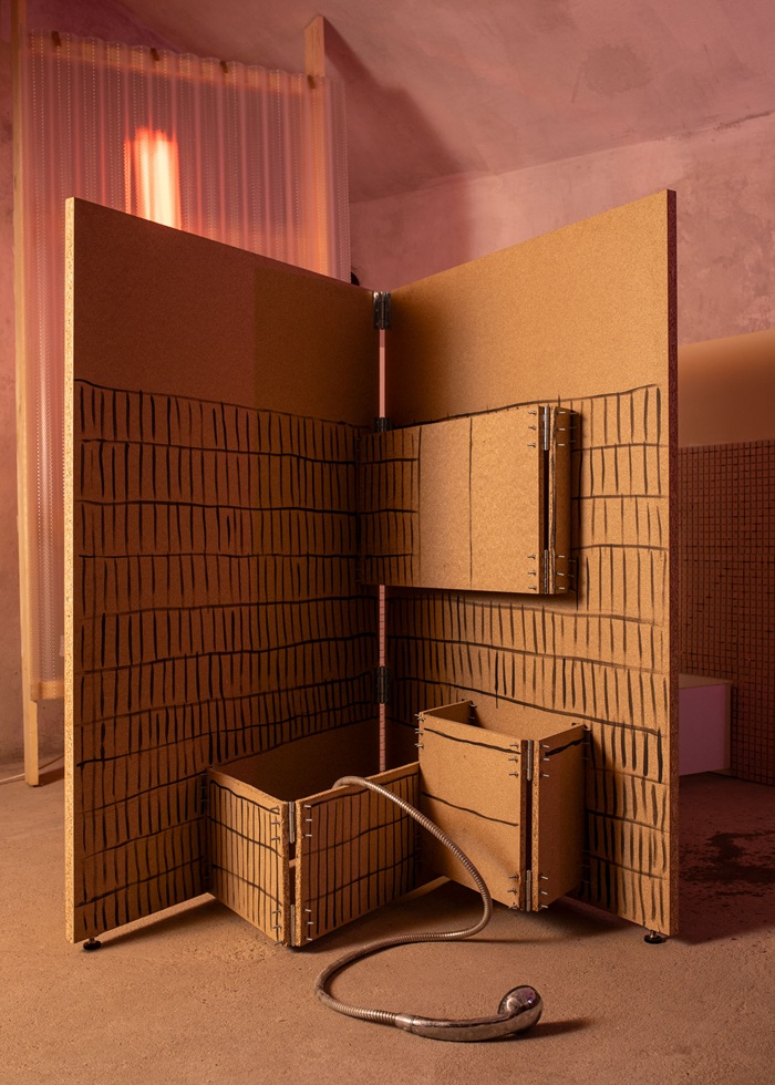 Instalace návštěvníky vtáhne do prostředí koupelny v rekonstrukci, kde mohou sami rozpohybovat scénografii prostřednictvím šlapání pedálů. Tím se spustí mechanický stroj v podobě nadživotní pop-up knihy, která vypráví příběh tvůrčích kroků i nečekaných komplikací. Součástí expozice je také reinterpretace ikonického křesla Charlese a Ray Eamesových, vyrobená z běžně dostupných materiálů.