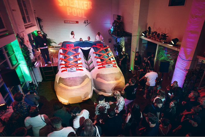 Hornbach v nové kampani „The Sneakerpool“ postavil bazén ve tvaru obřích tenisek Adidas ZX 10000. Za tímto účelem se spojil s obchodem s teniskami 43Einhalb.