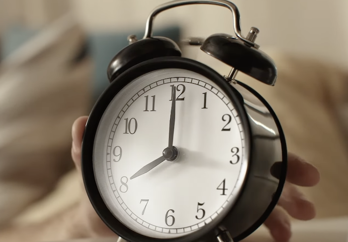 před spaním. Jako řešení nabízí budík, který „neruší, dokud není
