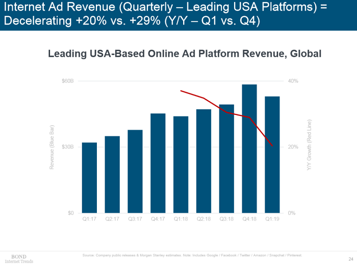 Analýza současně nastínila, že růst digitálního trhu v jistých ohledech naráží na svůj strop. Podíl uživatelů sociálních sítí, kteří se k nim přihlašují pravidelně, vzrostl jen o procento za rok. Ještě mezi roky 2016 a 2017 šlo však o šestiprocentní vzestup. Zpomaluje však i růst objemu výdajů na digitální reklamu: podle studie stoupl o 20 procent za rok, zatímco o rok dříve o 29 procent.
