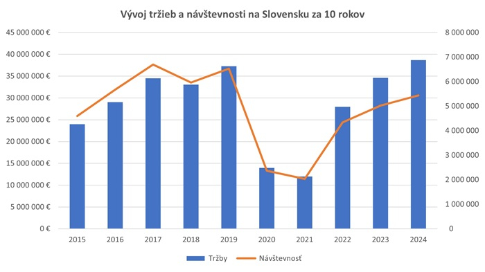 Průměrná cena lístku ve slovenských kinech mírně vzrostla na přibližně 7,1 eura. I díky tomu se tržby konečně dostaly na úroveň před covidem: v minulém roce dosáhly 38,66 milionu eur, zatímco v roce 2019 to bylo 37,26 milionu. Oproti roku 2023 vzrostly o 11,7 %. To je rozdíl například oproti americkému trhu, kde v důsledku nedávných stávek ve filmovém průmyslu a užší nabídky filmů tržby meziročně klesly o 3,3 %, uvádí Variety.