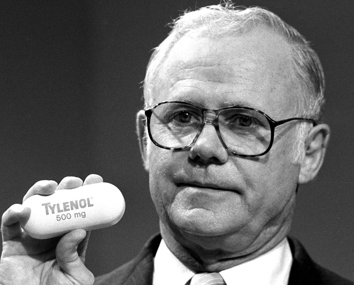 Za zářný příklad krizového managementu lze uvést i reakci Jamese E. Burkeho, někdejšího šéfa společnosti Johnson & Johnson. V 80. letech se stal jeden z nejdůležitějších obchodních artiklů firmy, lék proti bolesti Tylenol, terčem zločinné aktivity. Někdo některá balení otrávil, v důsledku čehož zemřelo osm lidí. Burke se za aféru osobně omluvil a v celonárodní kampani vyzval Američany, aby Tylenol neužívali a vrátili ho do lékárny. Díky tomu se firmě podařilo stáhnout 31 milionů produktů, vrátit lék zpět na trh v bezpečnějším balení, a ochránit tak svou reputaci.