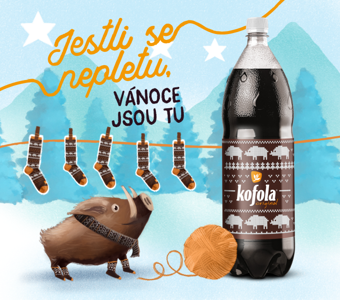 Vánoční reklamu Kofoly se sloganem „Jestli se nepletu, Vánoce jsou tu” doplní animace prasátka s klubkem vlny, které obléklo právě ponožky a šálu z vánoční kolekce. S pleteným motivem bude značka pracovat i na sociálních sítích a etiketách Kofoly Original 2L a 1,5L a vánočních limitek Karamel 2L a Jablko se skořicí 2L.