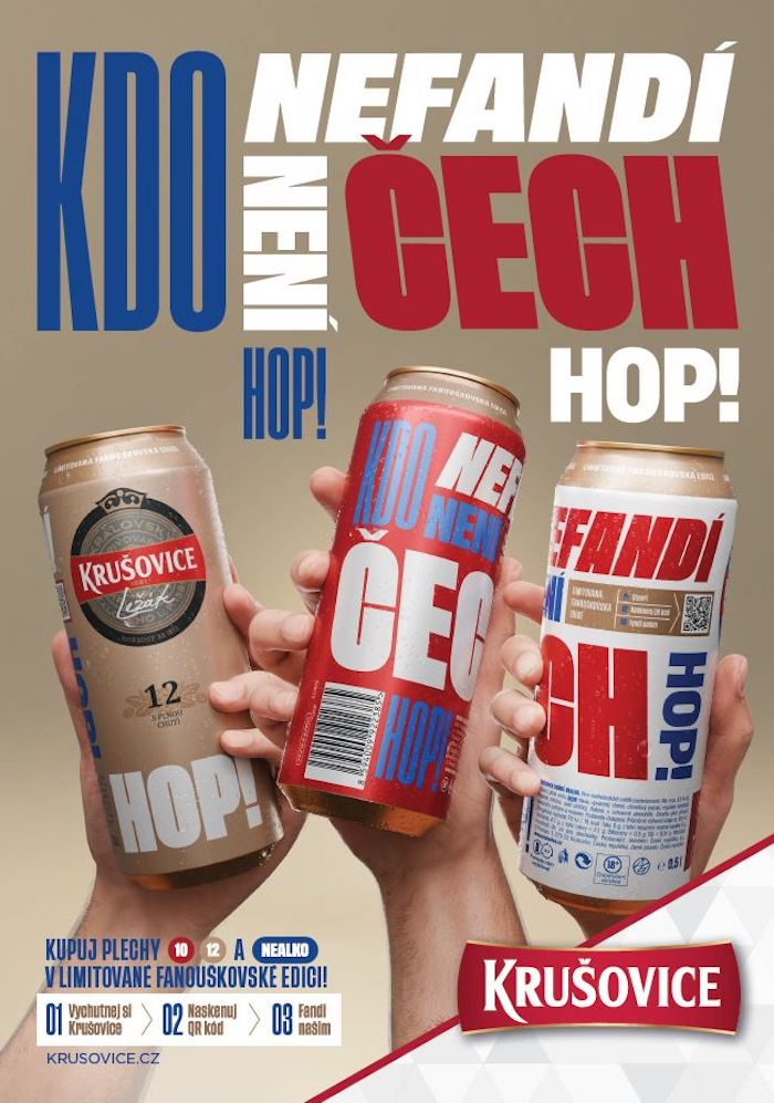 „Chceme tyto sportovní svátky oslavit limitovanou edicí fanouškovských plechovek Krušovice s originálním designem, které budou fandit s vámi,“ říká brand manažer značky Krušovice Pavel Vácha.
