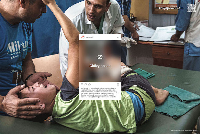 „Způsob, jakým někdy sociální sítě nebo média skrývají citlivý obsah z nejhorších humanitárních krizí dneška, není bezdůvodný. Informování o brutalitě válek je téma, ke kterému by se mělo přistupovat zodpovědně a zároveň s ohledem na zachování důstojnosti obětí i přeživších. Existují však případy, kdy tento dobře míněný proces neúměrně upřednostňuje naše vlastní pohodlí před každodenní zoufalou realitou lidí v ozbrojených konfliktech. Smyslem této kampaně je na tuto neustále se prohlubující propast upozornit a zviditelnit skutečné příběhy těch, kterým díky našim dárcům pomáháme,“ dodává Tomáš Bendl, vedoucí komunikace Lékařů bez hranic.