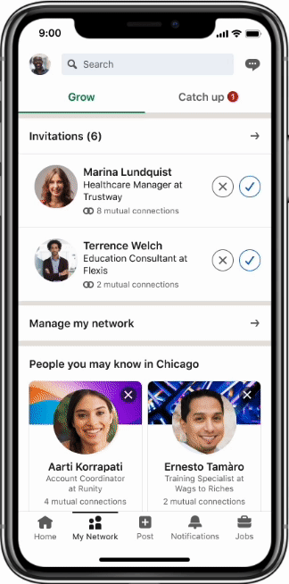 Takzvaný networking představuje podle LinkedIn jeden z klíčů k úspěšnému pracovnímu životu. Proto se provozovatelé populární sítě rozhodli zkusit její osazenstvo popostrčit k četnějšímu udržování a navazování kontaktů. LinkedIn postupně nasazuje překopanou sekci Síť, která v zastaralém modelu ukazovala primárně profily, s nimiž by se uživatelé mohli chtít propojit. Jenže jedna věc je navázání spojení, druhá jeho udržení nebo prohloubení. Z toho důvodu LinkedIn rozdělil Síť pomocí dvou různých záložek nazvaných Grow a Catch Up. První jmenovaná funguje na stejném principu, jako celá sekce nyní: nabízí hlavně tipy na potenciálně užitečné profily, se kterými uživatel ještě není ve spojení.