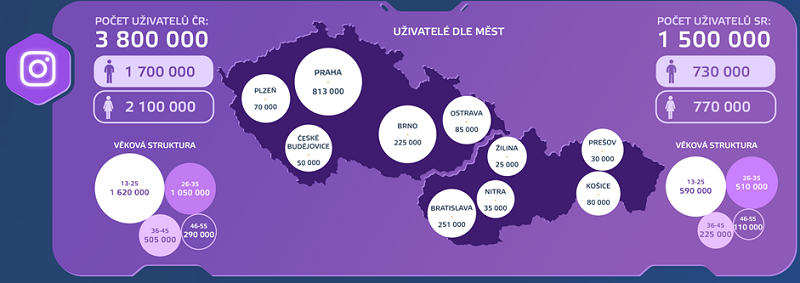 Nejvíce českých uživatelů do věku 22 let je dnes na Instagramu. Údaje této platformy říkají, že je dnes na této síti měsíčně aktivních zhruba 1,2 milionu Čechů do věku 22 let. Hned v závěsu je Snapchat, kde v tuto chvíli údajně můžeme oslovit až 400 000 uživatelů do věku 17 a bezmála 900 000 uživatelů do věku 22 let. Na TikToku je dnes zároveň možné oslovit až 1,1 milionu uživatelů do věku 24 let.