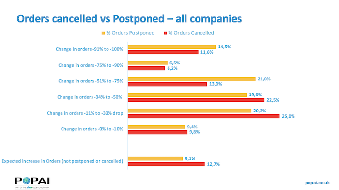 U 45 % firem způsobují zrušené či odložené objednávky vážné, nicméně stále zvladatelné problémy. U 23 % velmi vážné, což se významně týká především výrobců, u kterých tato hodnota dosahuje až 30 %. V České republice je situace o poznání pozitivnější – s velmi vážnými problémy se potýká jen 14 % firem, se zvladatelnými 19 %. U téměř čtvrtiny (23 %) problémy nejsou závažné, nicméně přímo ovlivní budoucí vývoj. V globálním průměru je to 20 %.
