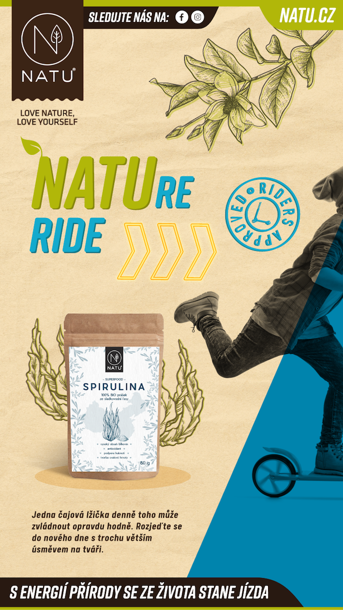 Český výrobce přírodních potravin Natu spouští v září komunikační kampaň s názvem „Natu.re Ride“, v níž tvrdí, že s energií přírody se ze života stane jízda.