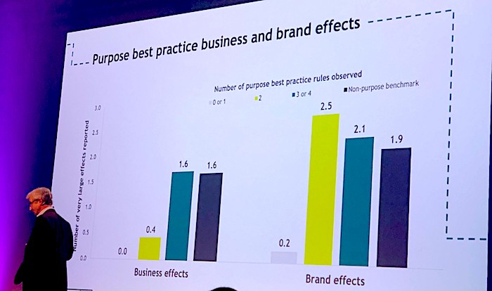 Field v úvodu předeslal, že značky se zaměřením na nekomerční a neziskové aktivity, například v oblastech udržitelnosti, zdraví, životního prostředí nebo společenského vývoje, v anglickém pojmosloví označované jako brand purpose, mají smysl, pokud jsou tyto aktivity autentické. V rámci výzkumu pod hlavičkou britské IPA Field porovnal 47 značek s nekomerčními aktivitami a 333 značek bez nekomerčních aktivit. Prvotní výsledky přitom příliš povzbudivě pro značky s nekomerčními aktivitami nevypadaly. Byznysové efekty byly v průměru shledány vyšší u značek bez nekomerčních aktivit. Při bližším zkoumání se ale ukázalo, že rozdíly ve výsledcích přináší to, jakým způsobem jsou tyto nekomerční aktivity pojaty. Pokud rezonují se značkou a jsou vhodně propojeny s produktem, dosahují lepších výsledků než značky bez nekomerčních aktivit.