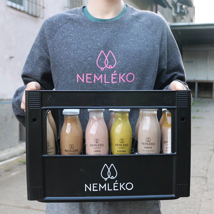 Před rokem a půl se na trhu objevilo Nemléko a už svým názvem ukázalo, vůči čemu se vymezuje. S logem rozpůlené mandle s klíčkem nabízí čistě rostlinnou alternativu živočišného mléka, jež je vyráběna z mandlí nebo máku, doslazována pouze datlemi a dochucena špetkou soli. Během své krátké historie Nemléko stihlo vytvořit také limitované edice a rozšířit svůj sortiment o další nemléčný produkt – Nejogurt.