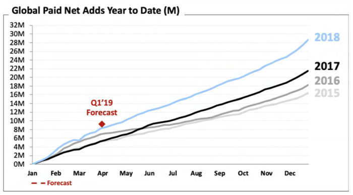 Video služba Netflix získala za celý loňský rok 29 milionů předplatitelů, což představovalo meziroční růst o 33 procent. V roce 2018 se tak předplatitelská základna Netflixu zvýšila rychleji než v roce 2017, kdy zaznamenala meziroční nárůst o 22 milionů předplatitelů.